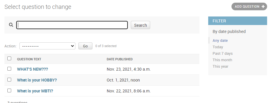 search_fields = ['question_text'] # Search 필드를 추가 한다.